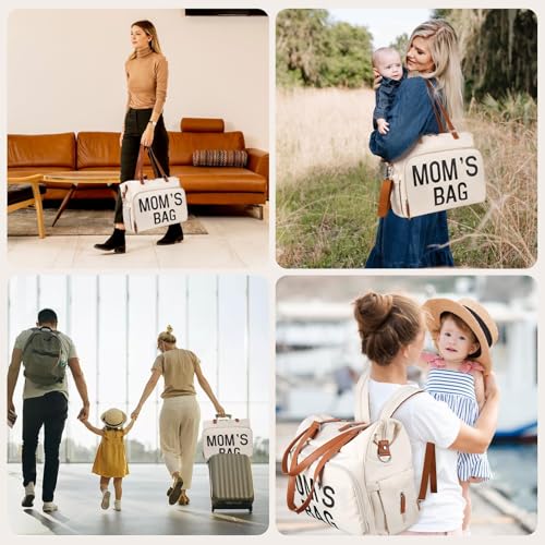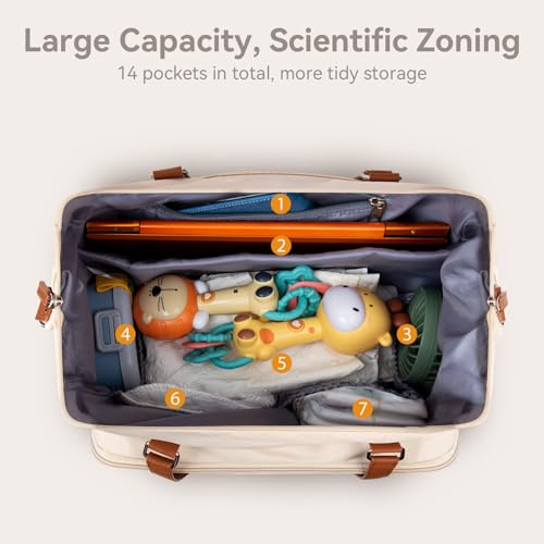 Diaper Bag Backpack Baby Bag, 4 in 1 Diaper Bag Tote, Mom Bag for Hospital with 14 Pockets, Diaper Tote Bag for Labor & Delivery, Large Waterproof Baby Travel Bag with 3 Insulated Pockets, Beige