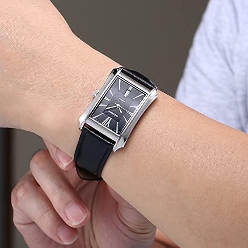 BERNY Mens Business Casual Quartz Watches Stainless Steel Case with Leather Strap Rectangular Watches for Men (Black, White, Grey, Rose Gold)