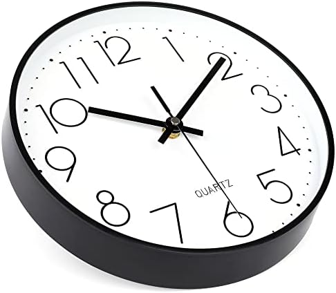 jomparis 10 Inch Black Wall Clock Battery Operated Silent & Non-Ticking Wall Clock Classic Clock for Home, Office, Bedroom, School