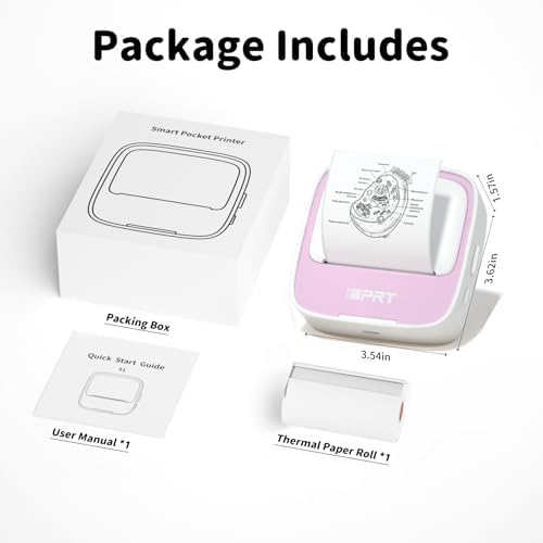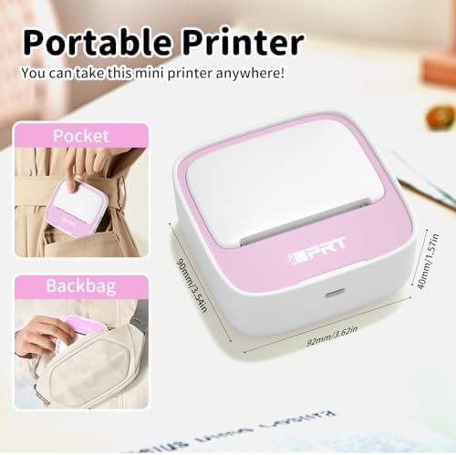 IDPRT portable mini thermal sticker printer, Bluetooth ink free printer with 1 roll of sticker paper, used for notes, diaries DIY、 Label printing, compatible with iOS and Android phones, pink color
