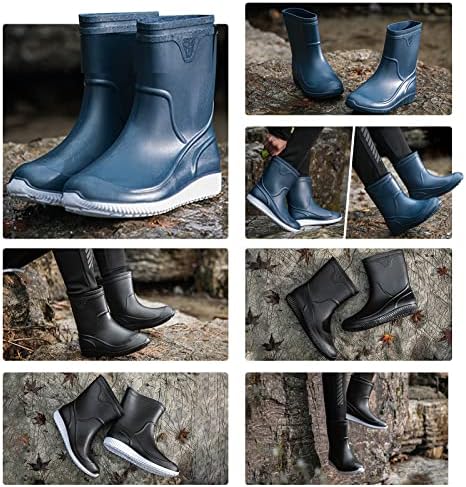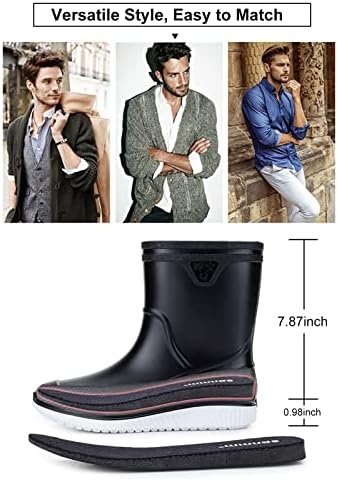Laple Mens Rain Boots Slip On Non-Slip Rubber Waterproof Ankle Boots Rain Shoes