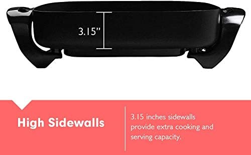 Caynel Professional Non-stick Copper Electric Skillet Jumbo, Deep Dish with Tempered Glass Vented Lid, Upgrade Thermostat, 16\u201Dx 12\u201Dx 3.15\u201D- 8 quart (16 * 12 Black)