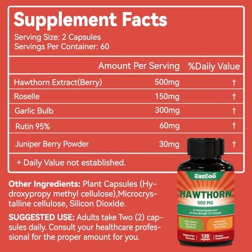 EAZGOO Hawthorn Berry Capsules, Extra Strength Hawthorn Berry Supplement, 120 Vegan Capsules