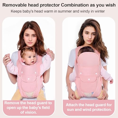 4-in-1 Baby Carrier Newborn to Toddler, Infant Carrier Ergonomic Adjustable Holder Portable Convertible Front and Back Backpack Carry for Infants Toddlers Babies 7-45 Pounds (Pink)