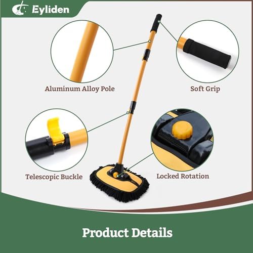 Eyliden Car Wash Brush Mop, Long Handle, 2 Scratch-Free Microfiber Heads, Car Detailing Care Kit for Car RV Truck