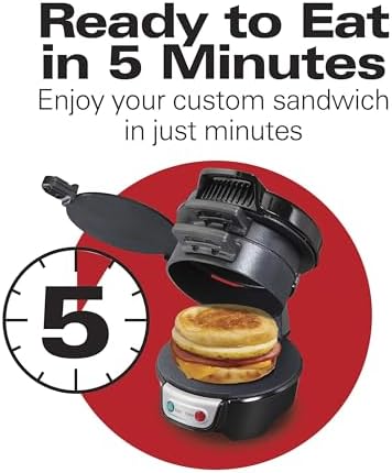 Hamilton Beach Breakfast Sandwich Maker with Egg Cooker Ring, Customize Ingredients, Perfect for English Muffins, Croissants, Mini Waffles, Perfect White Elephant Gifts, Black (25477)
