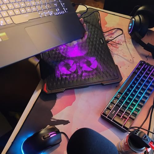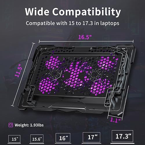 AICHESON Laptop Cooling Pad for 15.6 to 17.3 Inches PC Notebooks, 5 Fans Computer Cooler Stands with Purple Lights Desk Chiller Mat, S035