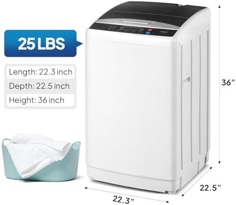 ROVSUN 25LBS Portable Washing Machine, Full-Automatic Electric Laundry Machine with Stainless Steel Drum, 110V Compact Washer, Washer and Spin Dryer Combo with Drain Pump for Apartment, Dorm, Home