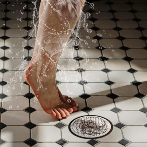 Ohtomber Shower Drain Hair Catcher - 4.72" 4PCS Stainless Steel Shower Stall Sink Drain Cover Strainer,Bathtub Hair Filter Trap Stopper, Bathroom Floor Screen Protector with Silicone Rim