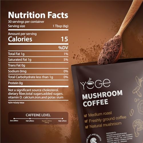 Mushroom Coffee, Instant Organic Mushroom Coffee with Cordyceps, Reish, King Trumpet, Shitake, Turkey Tail, Lions Mane for Energy, Focus, Positive Mood & Immune Support (30 Servings)