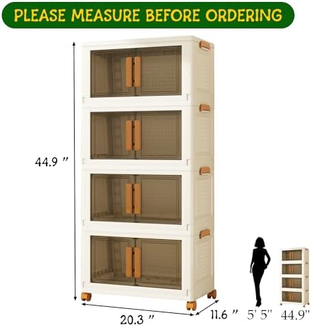 Edospaen 4 Tier Stackable Plastic Storage Bins with 1 Lid 45 QT\/Tier, Collapsible Plastic Box Storage Bin with Wheels, Home Containers Boxes Closet Organizers for Living Room, Office, Dorm