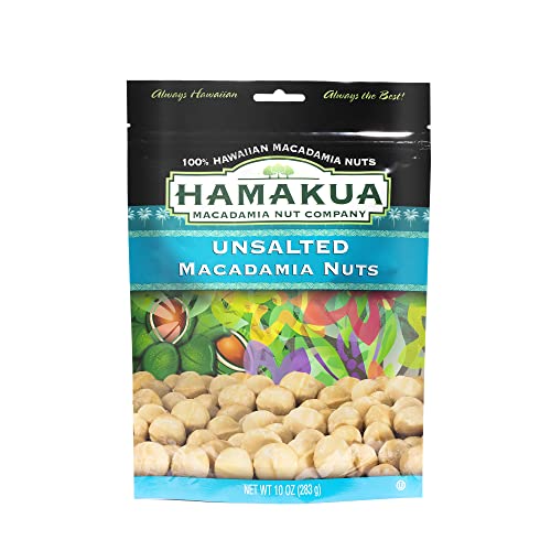 Hamakua Macadamia Nuts - Unsalted Hawaiian Grown Dry Roasted Half and Whole Macadamias without Salt - Natural Eco-Friendly Large Macadamia Nuts (10 oz Pouch)