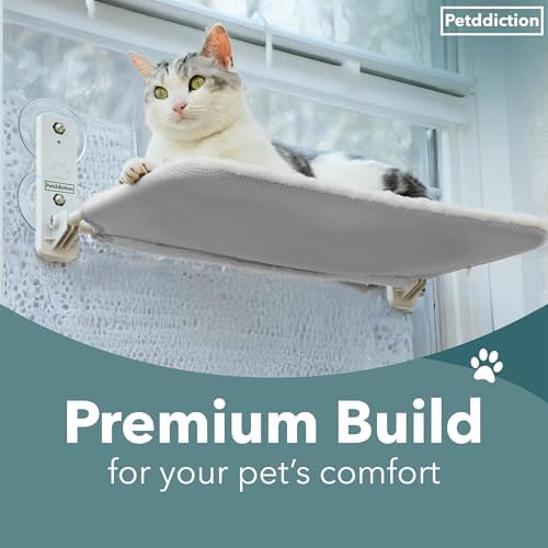 Petddiction - Cat Window Perch Cat Hammock Cat Window Bed Foldable Cordless Design Space Saving Stainless Steel Frame Strong Suction Cups Zipper Design 2 in 1 Reversible Cover