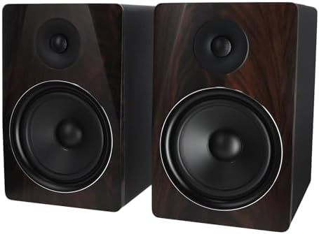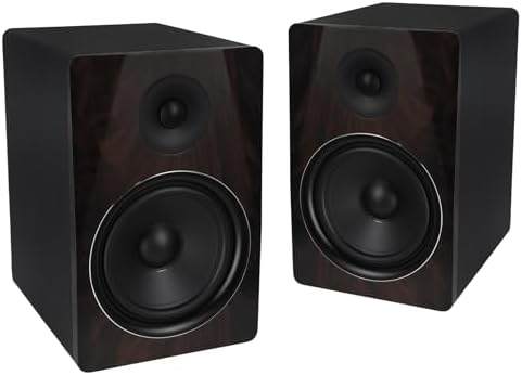 Rockville APM8D 8" 500W Active Powered Studio Monitor Speakers (Pair) - Dark Wood, Bi-Amplified, Neodymium Silk Dome Tweeter, Class D Amplifier, USB Input, XLR\/RCA, Volume & Bass\/Treble Cont