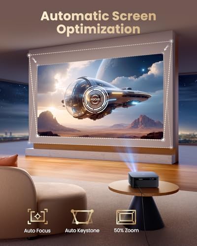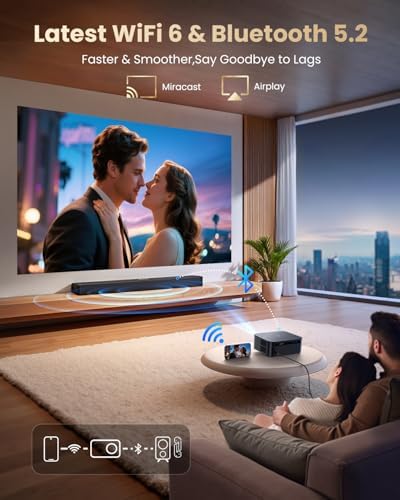 [1200 ANSI\/Google TV\/Netflix Licensed]Smart Projector with WiFi 6 and Bluetooth,Voice Control,4K Support Native 1080P Proyector,Auto Focus & Keystone Outdoor Movie Projector,WiMiUS K13 Black