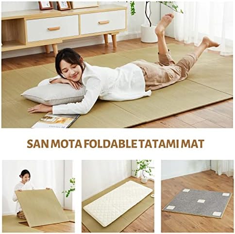 SAN MOTA Japanese Tatami Mattress,100% Rush Grass Tatami Mat 64"x64"x0.5", Living Room Non-Slip Design Tatami, Game Mat and Yoga Mat, Free Combination Without Edge (4 Piece Set)