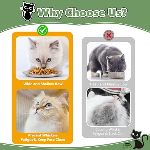 2-Pack Stainless Steel Cat Food Bowls \u2013 Shallow Whisker-Friendly Non-Slip Silicone Base,Easy to Clean Indoor Feeding Dishes(13 OZ,6.7")