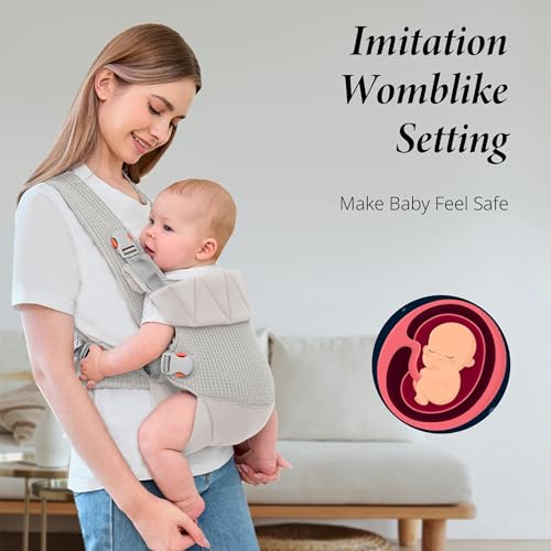 Huifen Breathable Mesh Baby Carrier, Ergonomic Design Baby Wraps Carrier with Head Support and Adjustable Sling for Newborns to Toddlers, Infant Carrier Baby Gift,for Babies 7 to 45 lbs (Gray)