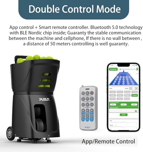 PT-Smart Tennis Ball Machine Automatic Portable Tennis Ball Launcher\/Thrower for All Level Players Training and Practice - Pre-Programmed and Custom Drills, Complete with App\/Remote Control.