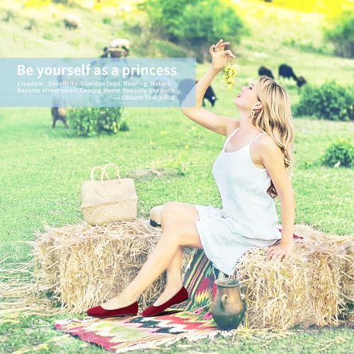 Obtaom Round Toe Women Flat Shoes Slip on Girls Dress Black Ballet Flats