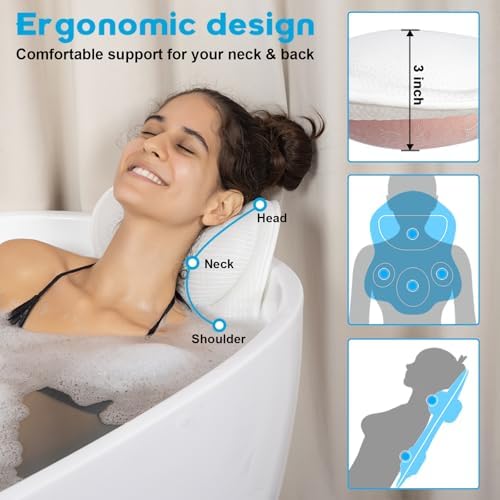 JUSDOO Deluxe Bath Pillow \\ u2013 Ultra Thick Anti Slip Bath Pillow with Rubber Back, Head and Neck Support, Suitable for Soaking, Spa Bathroom Accessories, Suitable for All Bathtubs (White)