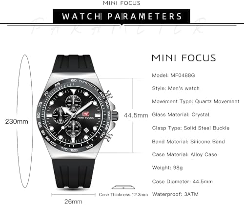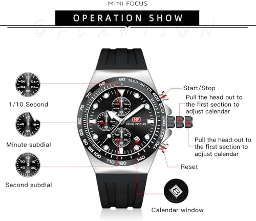 MINI Focus Men Watches Business Casual Wrist Watch (Chronograph\/Waterproof\/Luminous\/Calendar) Silicon Band Fashion Watches for Men\u2026