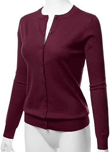 LALABEE Women's Crew Neck Gem Button Long Sleeve Soft Knit Cardigan Sweater