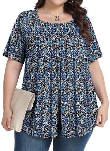 PEVRL Plus Size Tops for Women Summer 2025 Short Sleeve Shirts Tunics Square Neck Casual Loose Blouses 1X-5X