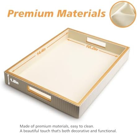 SANZIE Leather Tray Desktop Storage Organizer Premium Serving Tray Decorative Tray Valet Tray for Sundries Cosmetics Phone Wallet Cutlery (White Platter)