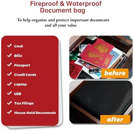 Fireproof Document Organizer, Large Size with 2000F Heat Insulated Money Bag, Document Safe, Office Briefcase, Black