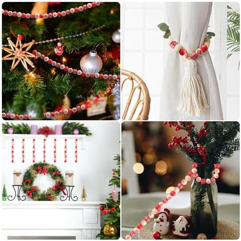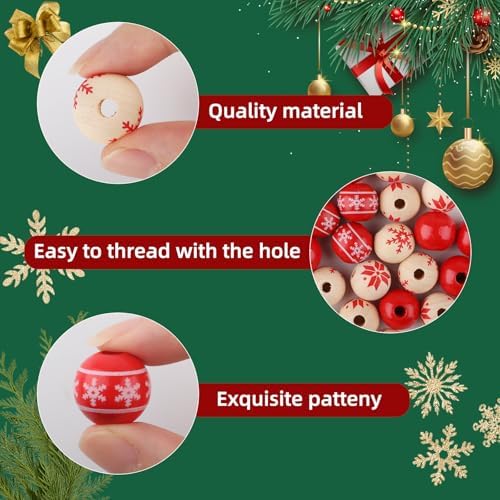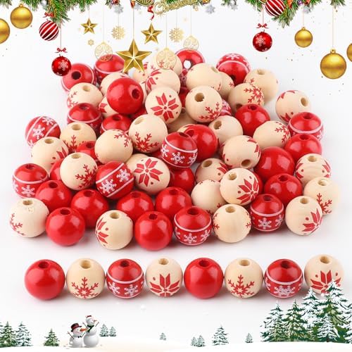 80 PCS Wooden Beads for Craft, 16mm Christmas Wood Beads Natural Wood Beads for Xmas Valentine's Day Saint Patrick's Day Party Decoration Home Decor DIY Craft Supplies(Style 1)
