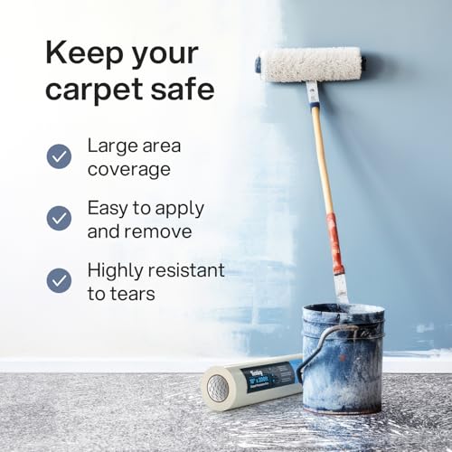 Kenley Carpet Protection Film - Self Adhesive Plastic Carpet Protector Film - Heavy Duty Shield Covering for Stairs Floor Runner Surface - Puncture & Water Resistant Sticky Protection Roll (18&#34