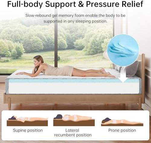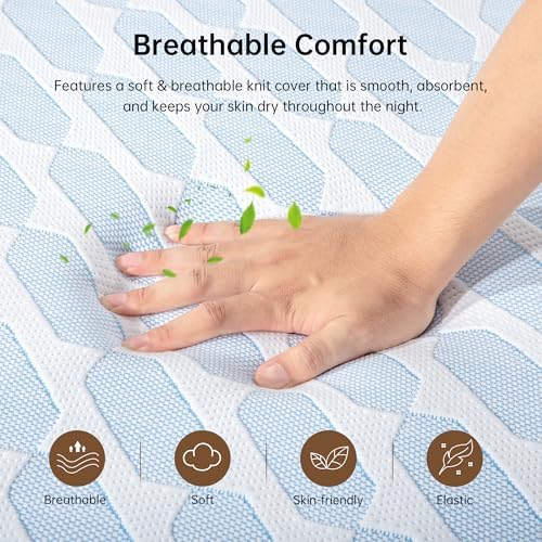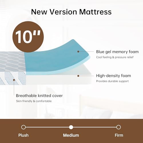 GTWMAT Full Size Mattress 10 Inch, Cooling Gel Memory Foam Mattress in a Box for Single Adult Cool Sleep Pressure Relief, Removable Washable Cover, Medium Firm Feel, CertiPUR-US Certified, Blue