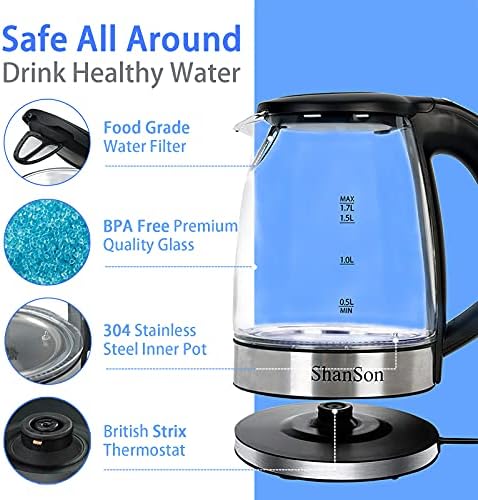 ShanSon 1.7L Electric Glass Kettle 1500W Temperature Control Fast Water Boiler BPA Free Auto Shut-off Protection Electric Teapot with Led Touch Screen and Two-year Quality Guarantee