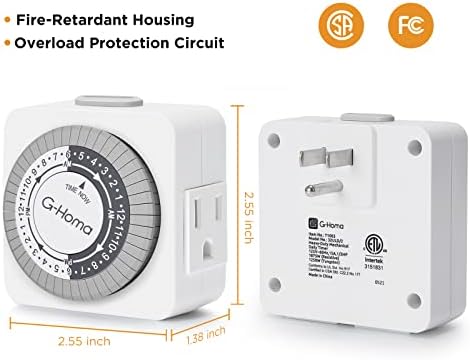G-Homa Timers for Electrical Outlets, 24 Hour Indoor Plug-in Mechanical Timer Mini, 30 Minute Intervals, 3-Prong, Daily On\/Off Cycle, for Lights, Lamps (4-Pack, ETL Listed)