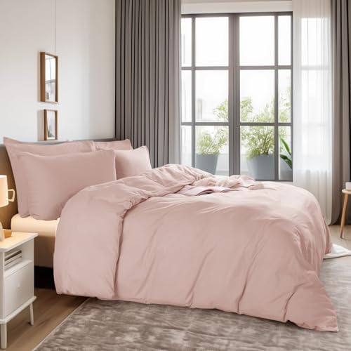 NEXHOME PRO Duvet Cover Set Kids Twin Size Linen Feel Textured Organic Natural 100% Washed Cotton Duvet Cover 2 Pieces Bedding Set with Zipper Closure, Breathable, Dusty Pink(No Comforter)